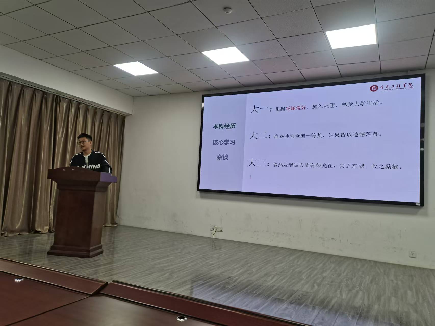緊接著,黨員與優秀學生代表依次進行分享。分享內容包括:對大三同學的建議、考研經驗、保研經驗、求職經驗、參軍經歷、英語四六級經驗等。