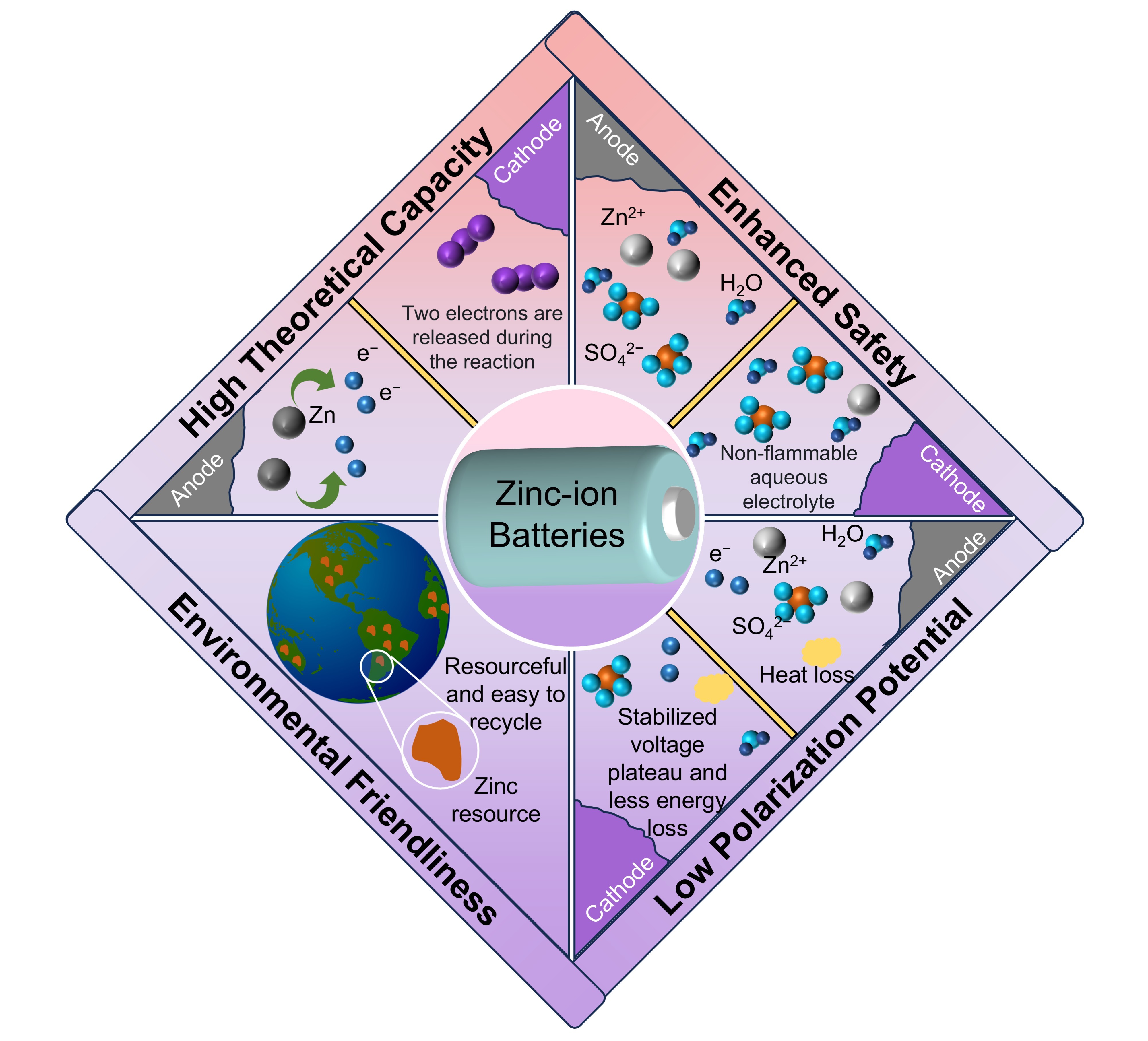 本文重點介紹了水系鋅碘電池發展的進展與挑戰,強調了從傳統雙電子體系向先進多電子構型的轉變。鋅碘電池因其原材料豐富、環境可持續性和高理論容量而具有廣闊前景。然而,多碘化物穿梭效應和鋅枝晶形成等問題阻礙了其性能和穩定性。近期在極性材料、催化劑、隔膜和碘錨定化合物方面的進展旨在延長循環壽命、提高比容量和放電電壓。利用更高碘氧化態的多電子鋅碘電池可改善能量密度和效率,鹵化物離子和有機分子等創新技術可穩定高價碘物種以增強電子轉移。未來方向包括官能團工程、碘物種穩定化、材料優化和人工智能輔助集成,以提高能量密度、使用壽命和成本效益,適用于大規模和便攜式應用