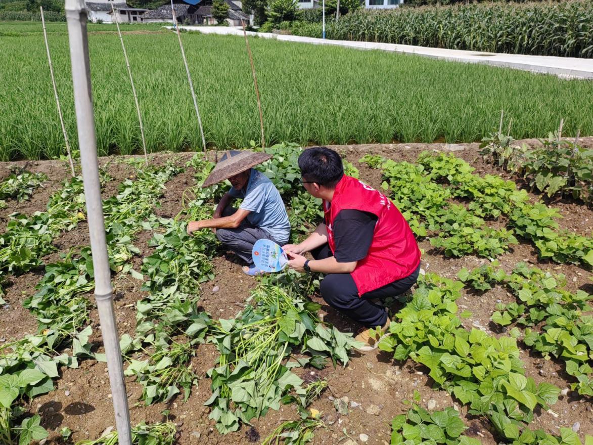 實(shí)踐隊隊員在田間調(diào)研村民用電情況