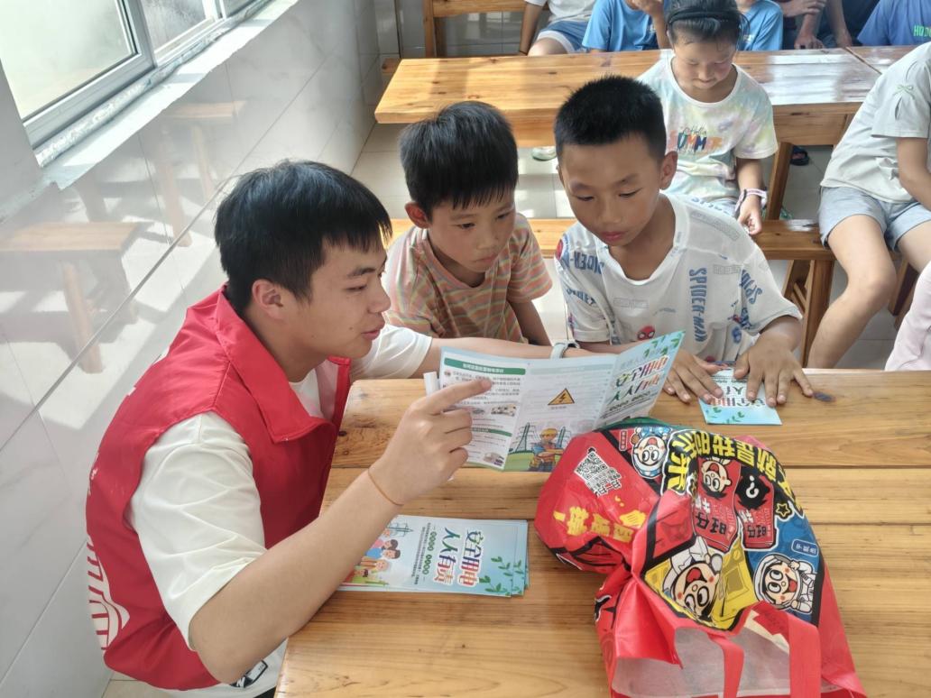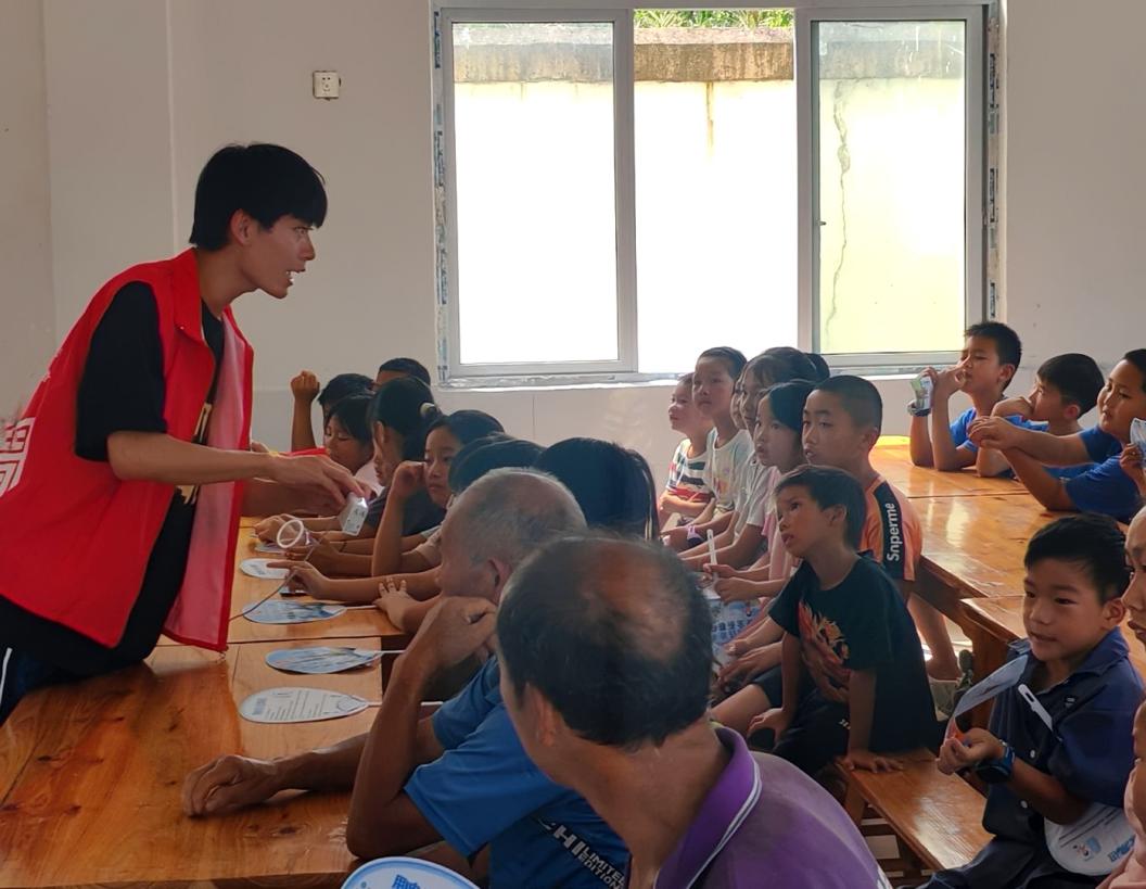 實(shí)踐隊向黔龍完全小學(xué)學(xué)生派發(fā)講解用電安全知識宣傳冊