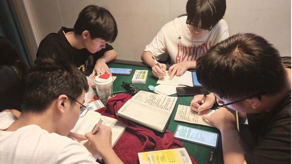 實(shí)踐隊隊員在晚上復(fù)盤、整理訪談?wù){(diào)研記錄